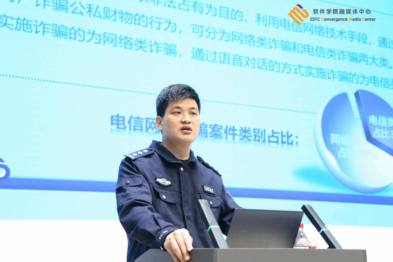 讲座以预防电信(网络)诈骗知识为主题,张义中中队长主讲。张义中队长从警多年👡,办案经验丰富,他结合现实生活中的真实案例和详实的数据,向同学们介绍了刷单返利兼职、冒充网购客服、冒充熟人、冒充贷款客服👨🚒、虚假投资理财平台、跑分等常见电信诈骗方式,揭穿骗子常用的诈骗伎俩;详细讲解了新型电信网络类诈骗类型的本质及特点♎️,并提出了有针对性的应对防范措施,叮嘱同学们要牢固树立反诈骗意识,切忌贪小便宜👩👩👧,一旦被骗👲🏼👨🏻🎓,尽快掌握对方的有罪证据并迅速报警💃🏿,要切实维护好自身的合法权益。