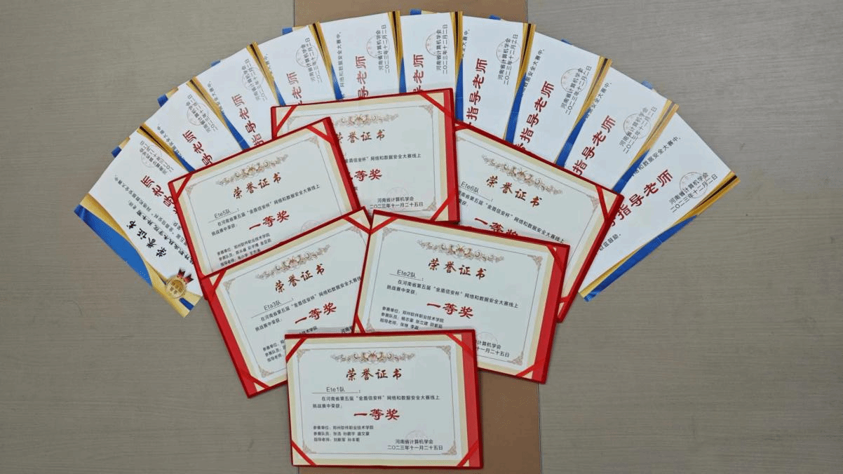 “金盾信安杯”网络安全大赛是河南省举办历史较长、影响力较大的网络安全赛事之一🤸🏻🥻,学院六支参赛队伍报名以来,在指导老师帮助下积极备赛,刻苦训练,在818支参赛队伍中排名分列第94名、101名🦹🏽‍♂️、104名、110名、110名、142名,最终取得了五项一等奖🔠、一项二等奖的优异成绩⛎,展现了郑软学子的风采,也为自己未来职业生涯增添了浓重的一笔!祝贺他们🧑‍🍳,愿他们再接再厉,取得更加优异的成绩!