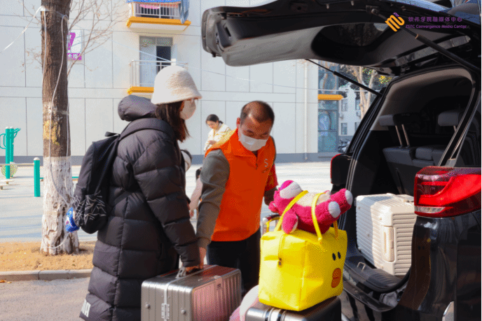 1月12日🕵️♀️,学校国旗广场一字排开20辆私家车🧠🤪,教师党员们准时集合,迎接各位“软籽们”,教师入党积极分子也投入工作中🌈,协助学生们搬运行李上车,组织安排交通🟠,校园内热热闹闹,充满着爱的氛围🥷🏻。行驶途中,教师们与学生融洽沟通,交谈学生在校生活🚣、考试情况、回乡打算等话题🚶🏻♂️➡️。