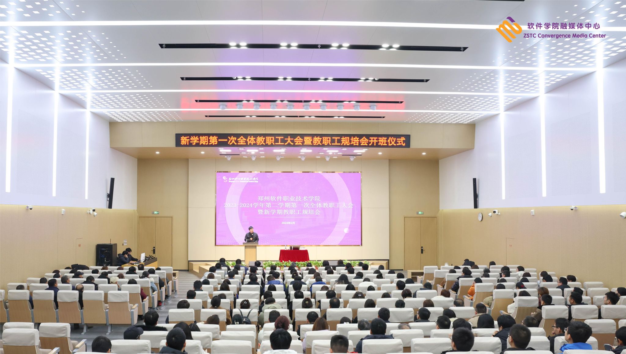 开班仪式结束后→,副院长许心思为教职工带来《凝心聚力的软件人注定勇往直前》主题报告,教务处处长王利凯讲授《教职工师风师德警示教育》和《大学课堂教学基本规范》,邀请郑州轻工业大学马克思主义学院马铮副教授讲授《“思政课程”与“课程思政”协同育人着力点探讨》主题讲座,人事处✢、现教中心根据工作需要进行相关培训👩🏻💻。