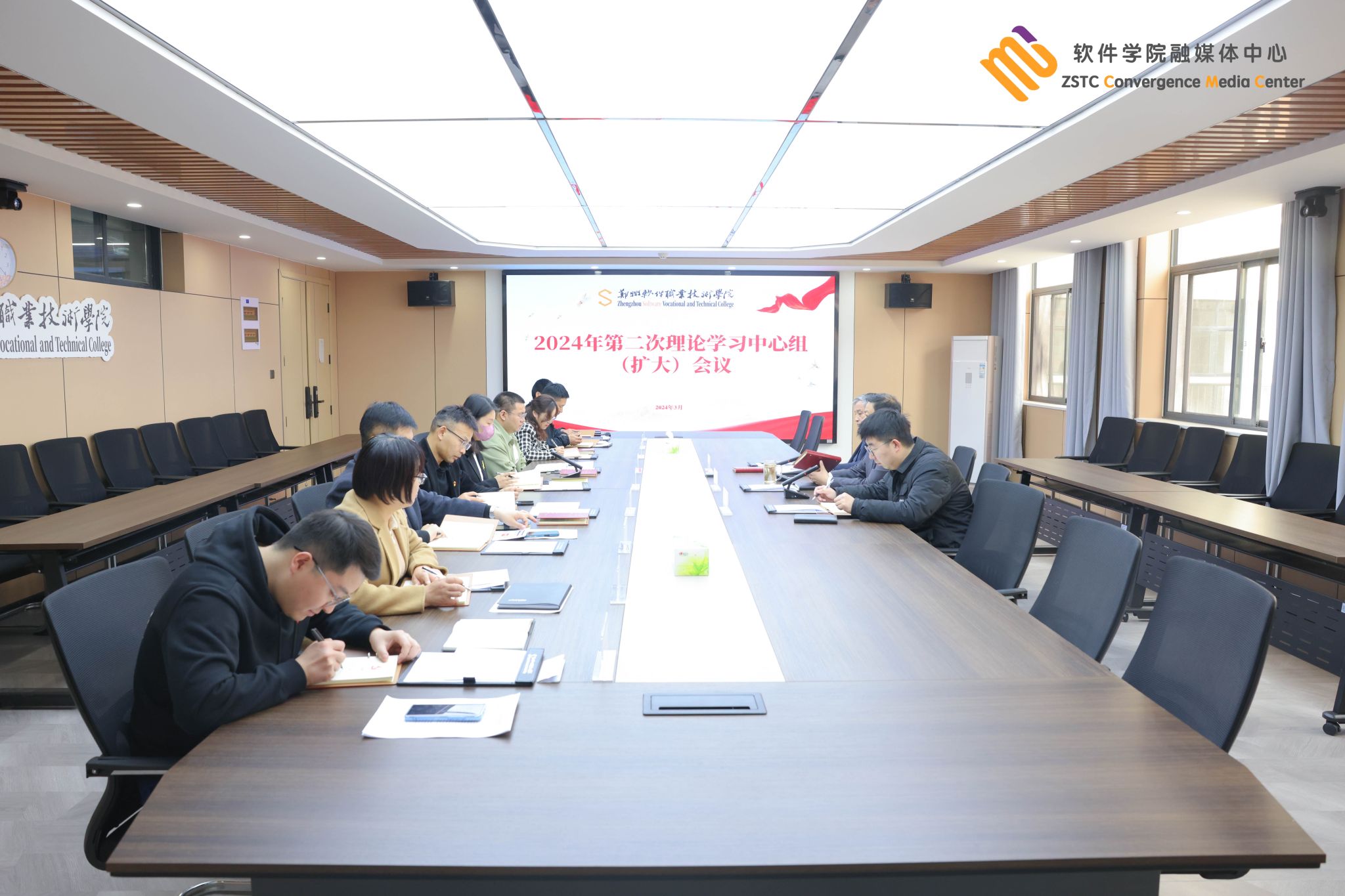 2024年3月22日下午,郑州软件职业学院在行政楼205会议室召开党委理论学习中心组(扩大)学习会议▶️,学院党委理论学习中心组成员👷🏻、全体中层干部参加了会议。会议由党委书记孙振营主持。