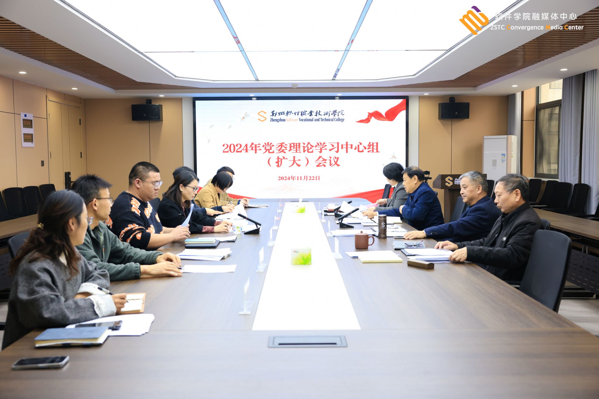 11月22日上午,我校党委理论学习中心组(扩大)第十一次集体学习会议在行政楼205会议室举行🧘‍♂️,会议由党委书记孙振营主持,党委班子成员,在校中层干部参加会议🤱🏼。
