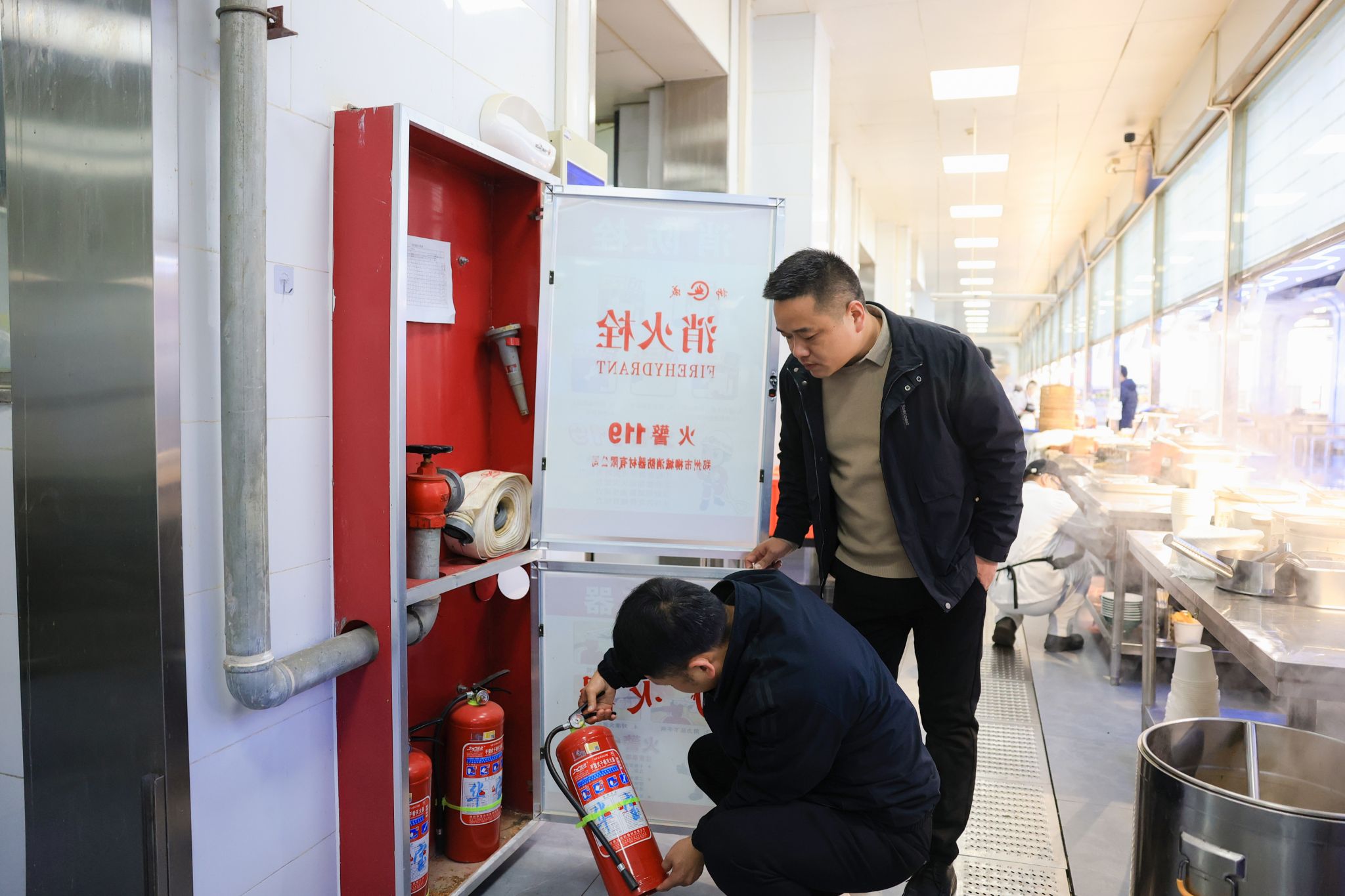 检查组先后深入总监控室🛸、消防控制室、教学楼、宿舍楼、餐厅💾、图书馆等重要区域,全面检查了校园的消防安全布局🈳,特别关注了消防设施的完备性、学生宿舍内是否存在及违规使用电器的情况🧗🏿👨🏿‍🦲,并深入排查食品安全保障🤦🏻‍♀️、校园交通秩序等多个方面的问题。