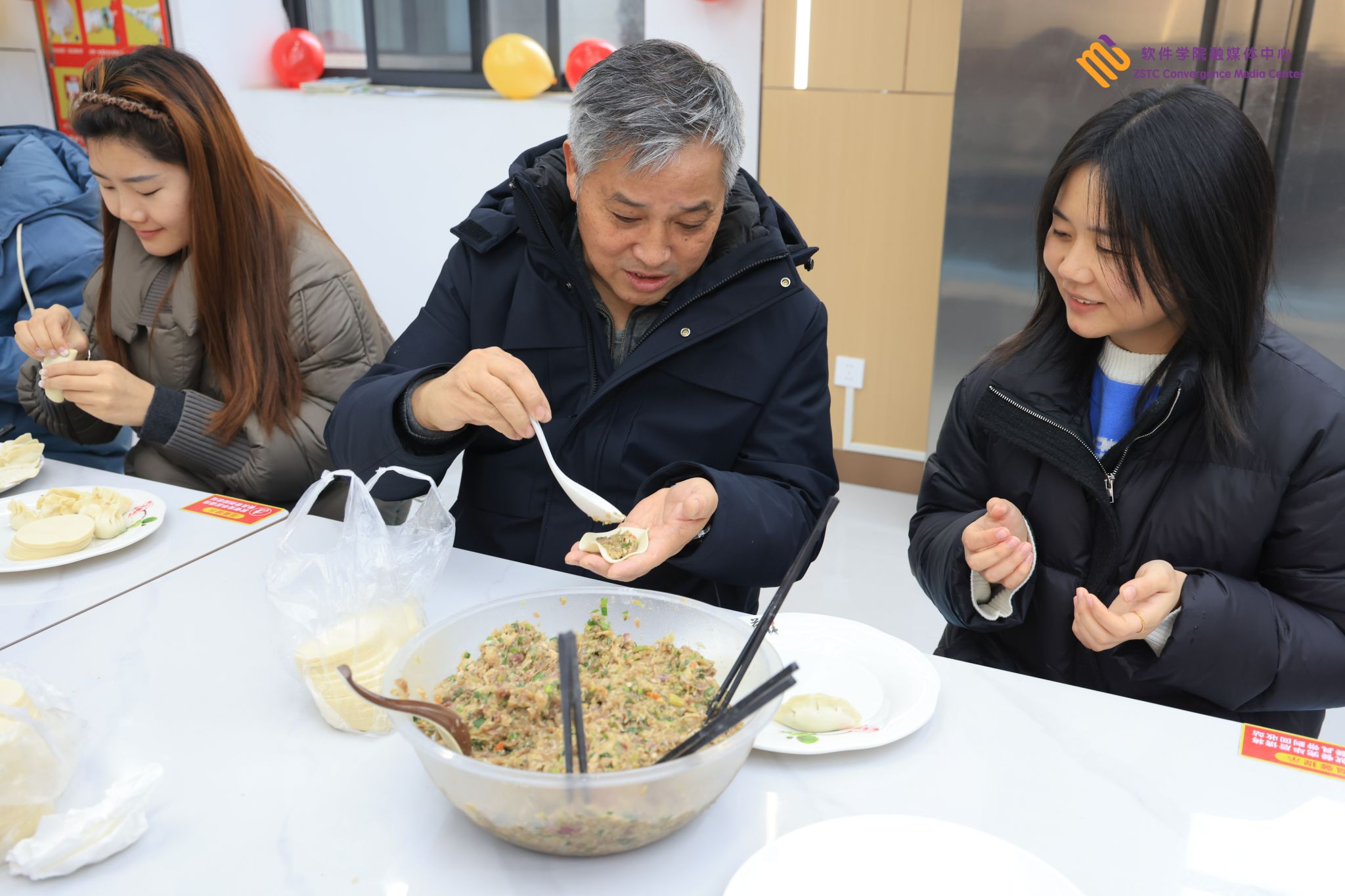 餐厅里🔥👚,师生代表们欢聚一堂👨🏿🦱、其乐融融。经验丰富的老师们还时不时地与同学们分享包饺子的心得与技巧👨👩👧👧,欢声笑语回荡在餐厅。