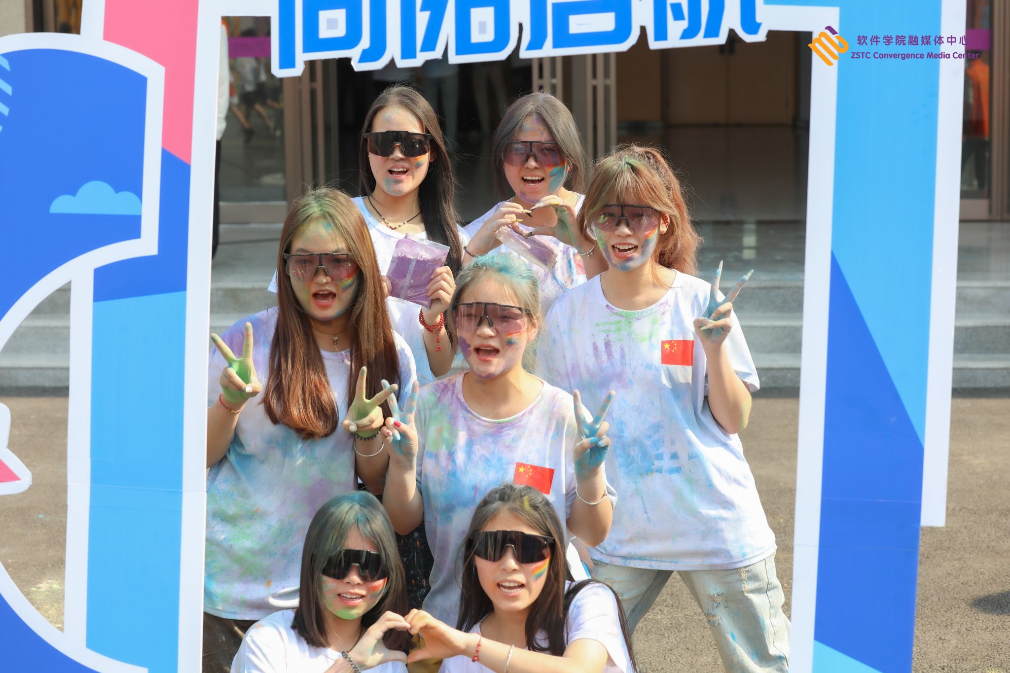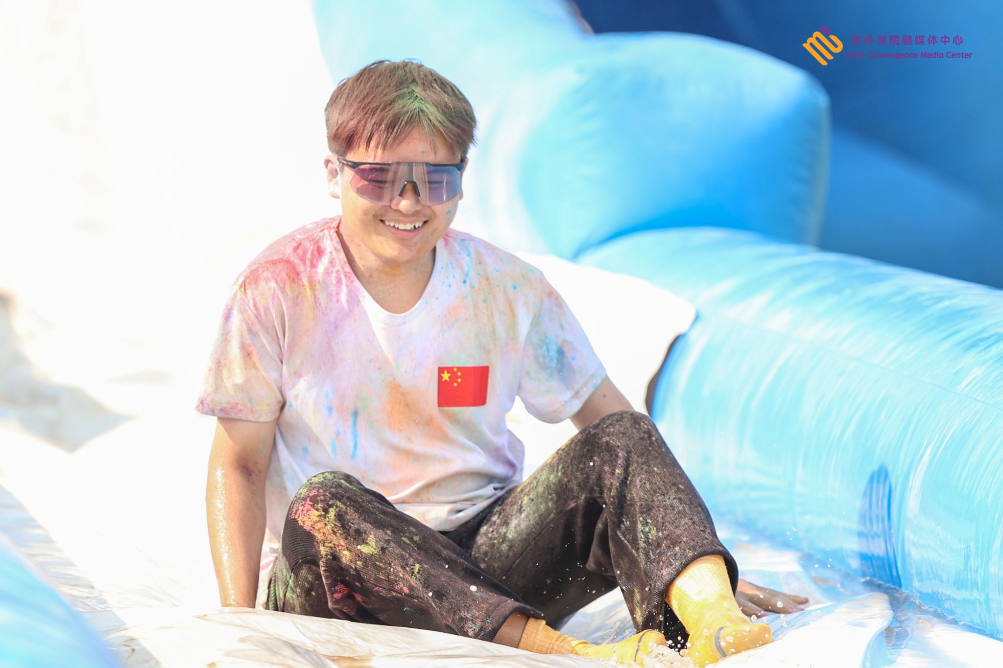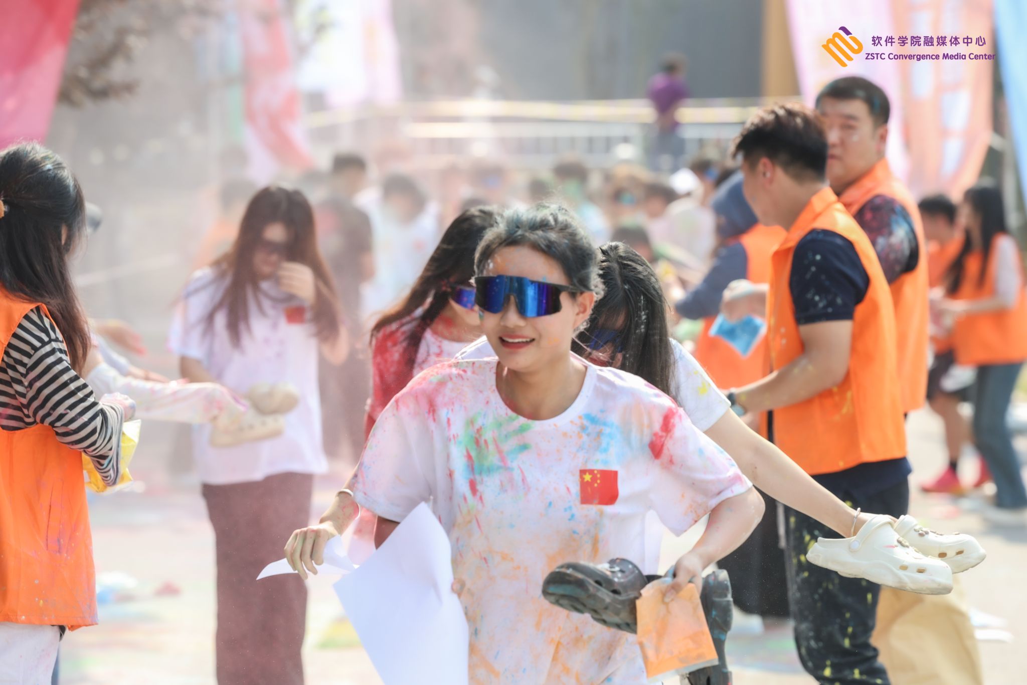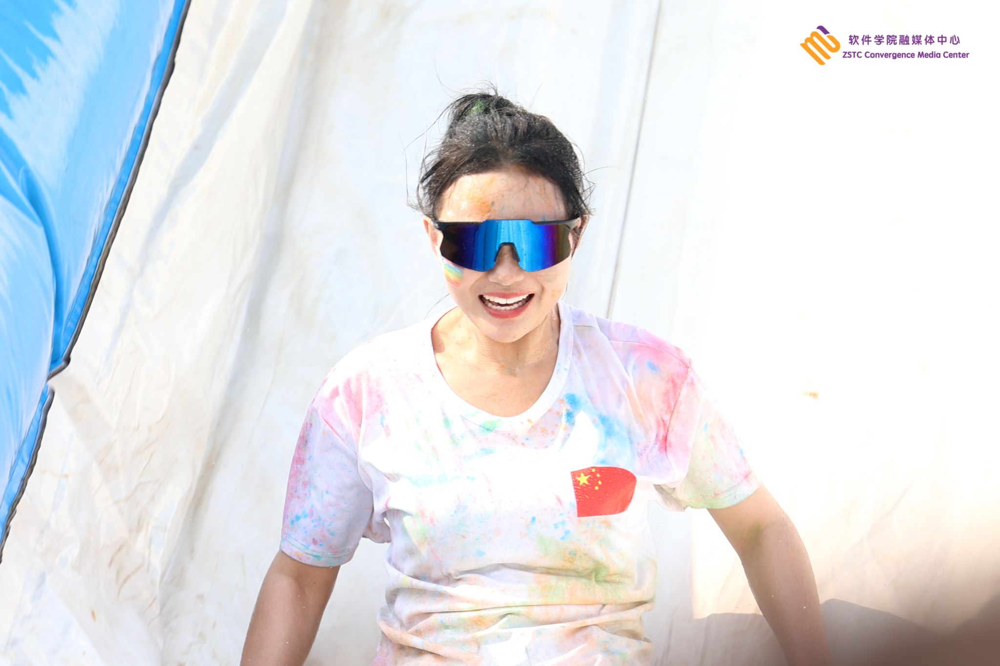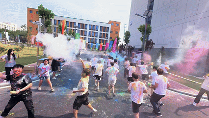 下午三点三十分,缤纷彩虹跑活动由校长秦方奇教授宣布开幕,学生们身着统一白色T恤,手持彩色环保无毒可降解玉米粉袋,从一站式学生服务中心开启首轮“百人粉战”,沿途设置的七大互动环节更是成为全场焦点🫂,学生们在志愿者“水枪攻势”中体验清凉快感📃🚫。