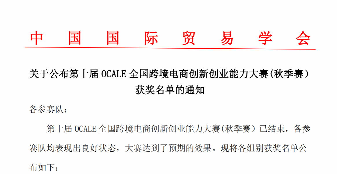 2024年11月28日🍯🍉,由中国国际贸易学会主办、全国外经贸职业教育教学指导委员会为技术指导单位的“第十届OCALE全国跨境电商创新创业能力大赛(秋季赛)”圆满落幕。电商学院参赛团队在933支参赛队伍中脱颖而出👩‍🦽,斩获佳绩👩🏼‍🔬,为学校争得了荣誉。
