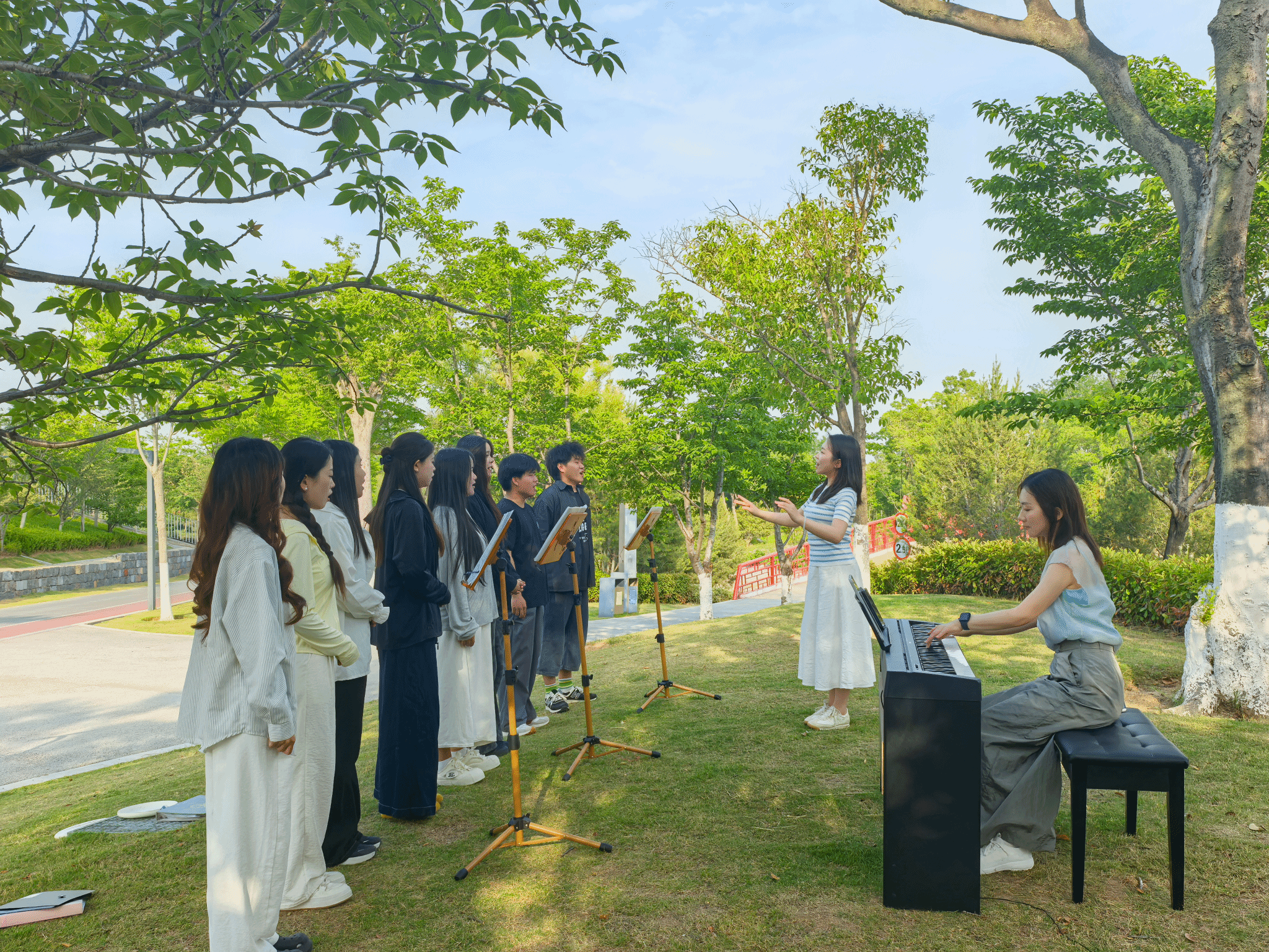 初夏的微风轻拂🚉,绿意盎然的草地上传来阵阵悠扬的旋律。音乐专业的同学们在老师的指导下🚵🏿♂️,以天地为舞台,开展了一场沉浸式声乐训练。从经典民歌到流行演唱,同学们用清澈的嗓音诠释不同风格的作品,教师通过现场示范☕️,讲解气息控制👩👩👦、情感表达等技巧。